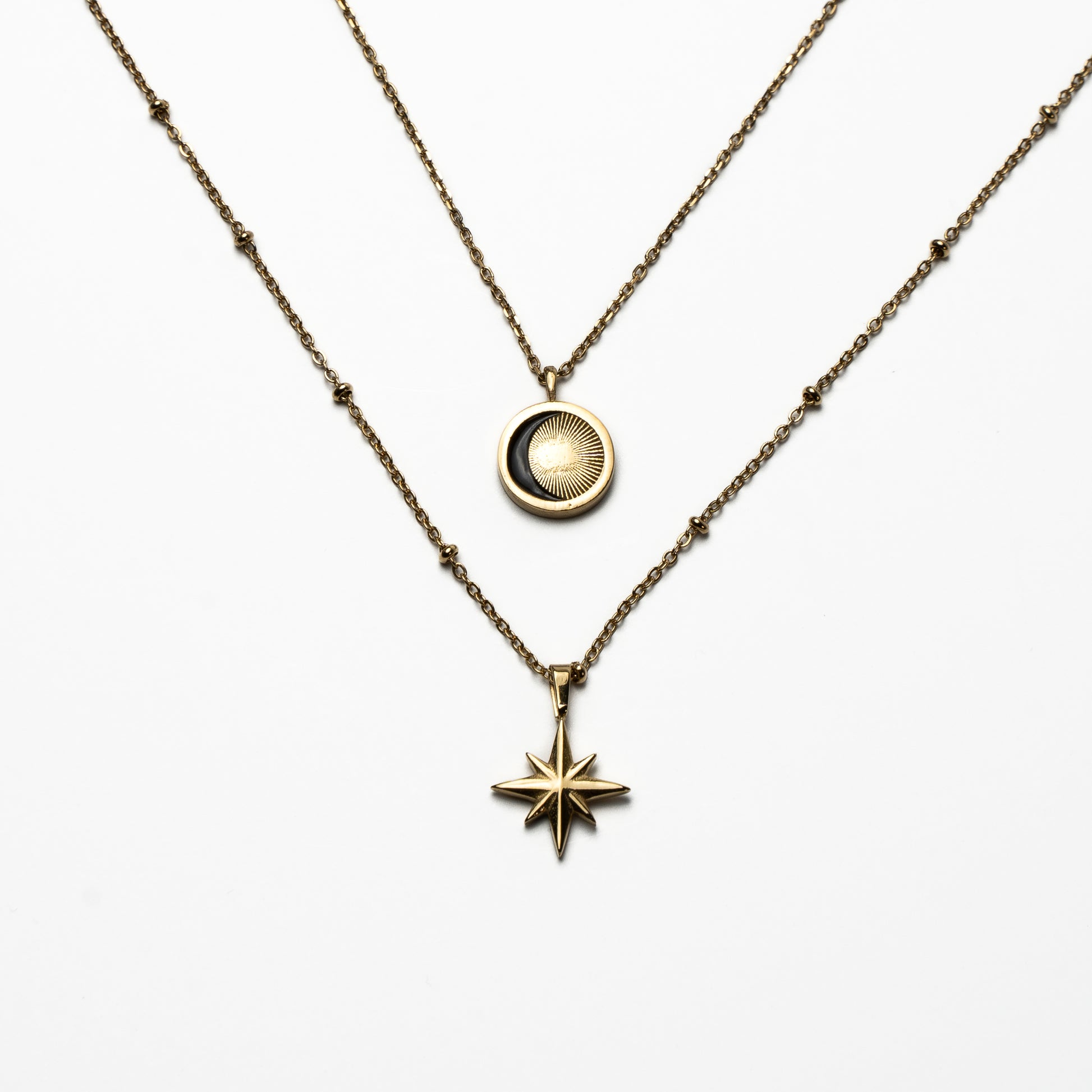 Our moonstar necklace set is sweet and simple, perfect for everyday wear. 2 necklaces that can be worn as layers or give one necklace to someone you love for connection.