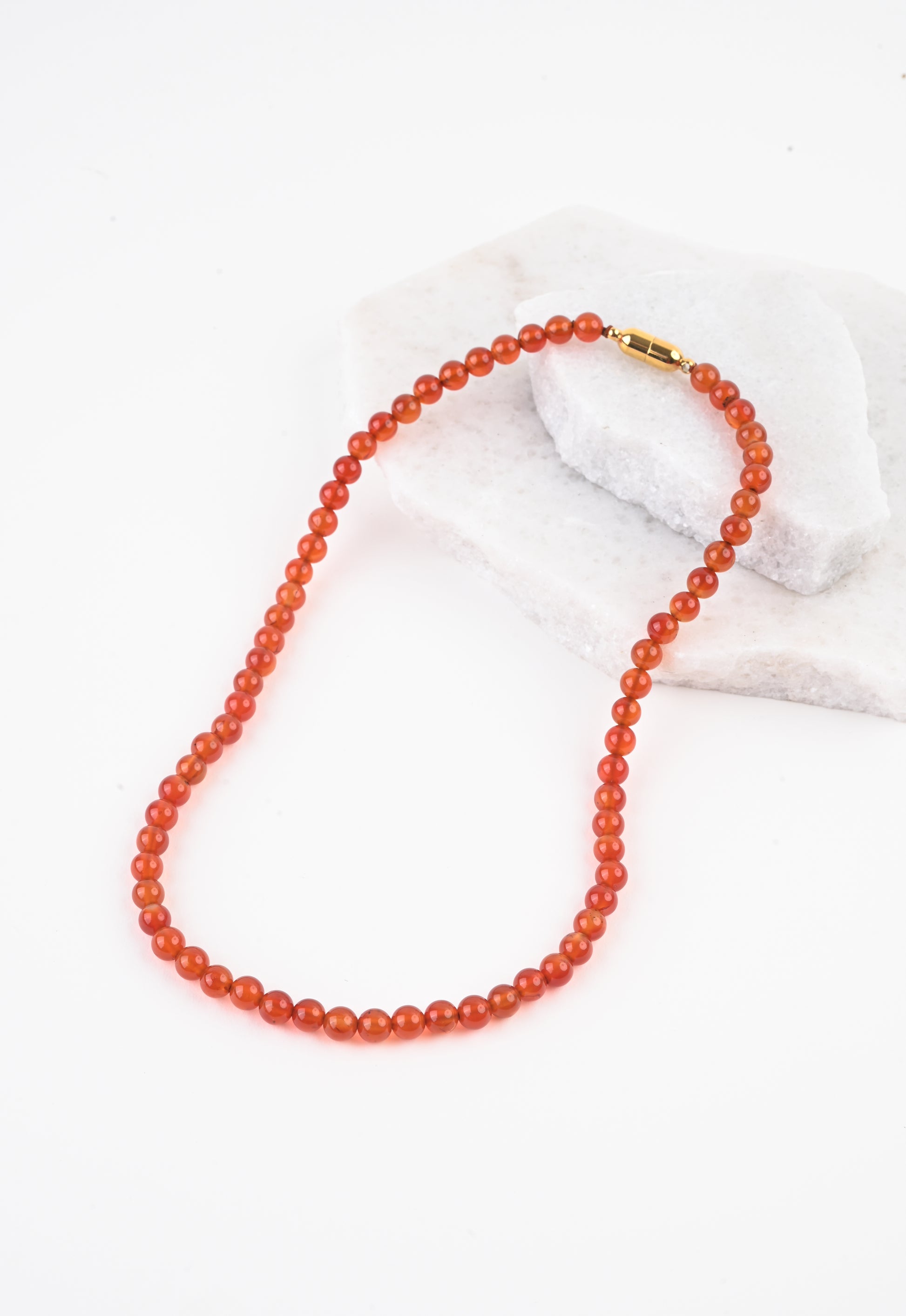Orange Agate beads - Elegant, timeless and effortlessly modern - this necklace features a slick magnetic link closure, making it clasp-free and easy to wear. Wear them apart or link the two together for a longer, statement making necklace. Also links beautifully with our gold chain set.